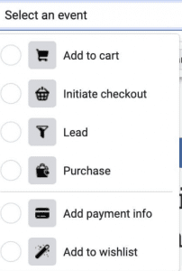 Отнасят се до всичко, което може да се измери с помощта на Фейсбук пиксела.
