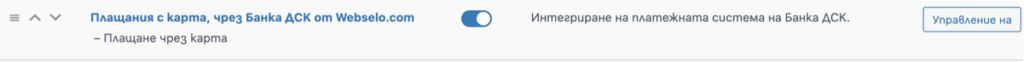 3. След инсталирането на плъгина ще можете да го активирате след като влезете в WooCommerce -> Настройки -> Плащания, а ако ви е по-удобно напишете в браузъра: